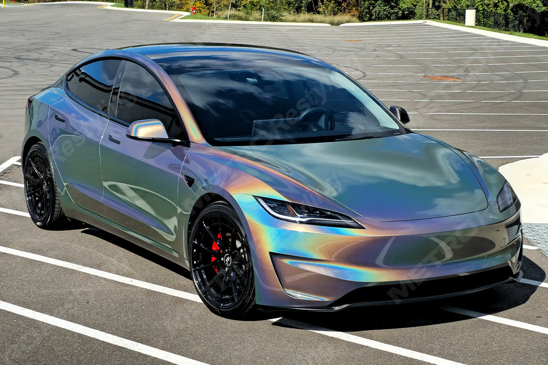 Tesla Model 3 wrapped in 3M 2080 Gloss Flip Psychedelic Vinyl Wrap | GP281