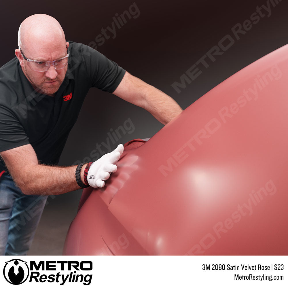 3M Satin Velvet Rose Vinyl Wrap is a cast vinyl film designed to apply to any non-porous surface you choose. This film is used on vehicles for interior and exterior parts. Customers have used this vinyl on various surfaces, including airplanes, motorbikes, and even everyday household items like countertops, refrigerators, and dishwashers. Turn your vision into a reality with the 3M Satin Velvet Rose car wrap!