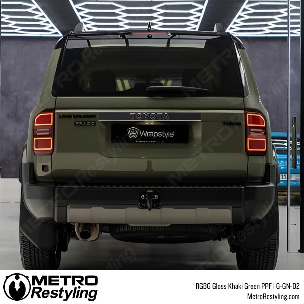 RGBG Gloss Khaki Green Colored PPF introduces a rugged yet sophisticated tone that blends military-inspired strength with modern luxury. Its high-gloss surface enhances every contour with smooth, reflective depth, giving vehicles a powerful and distinctive presence. Perfect for those who appreciate bold color with refined polish, this finish captures both toughness and elegance in one sleek design.