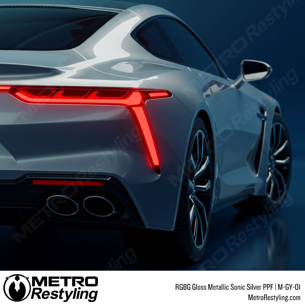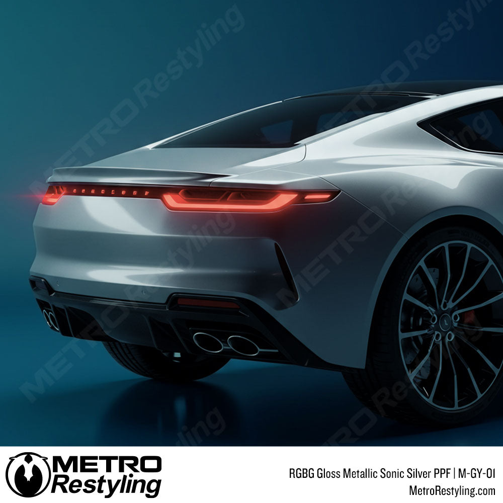 RGBG Gloss Metallic Sonic Silver Colored PPF delivers a sleek, modern metallic tone that perfectly balances elegance and performance. Its high-gloss surface reflects light with precision, adding depth and sophistication to every contour. Designed for those who value refined luxury with a contemporary edge, this finish enhances vehicles with a polished, high-tech aesthetic.