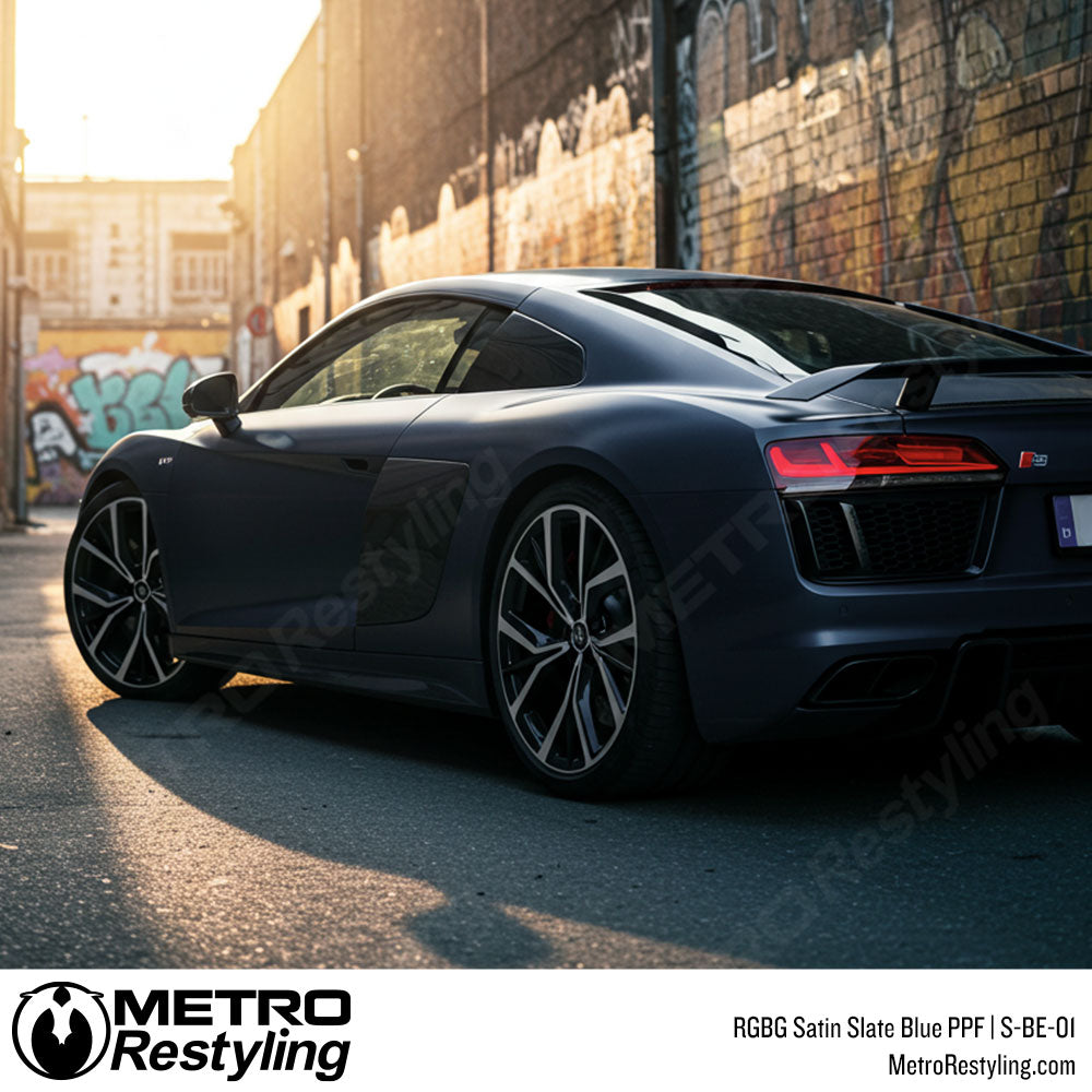 RGBG Satin Slate Blue Colored PPF introduces a sophisticated blue-grey tone that merges calm elegance with modern character. Its satin-matte surface offers a smooth, muted sheen that enhances every contour with subtle depth and style. Perfect for those seeking a refined yet distinctive appearance, this finish adds a touch of cool confidence to any vehicle.