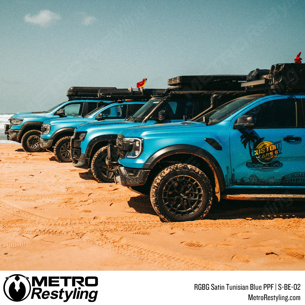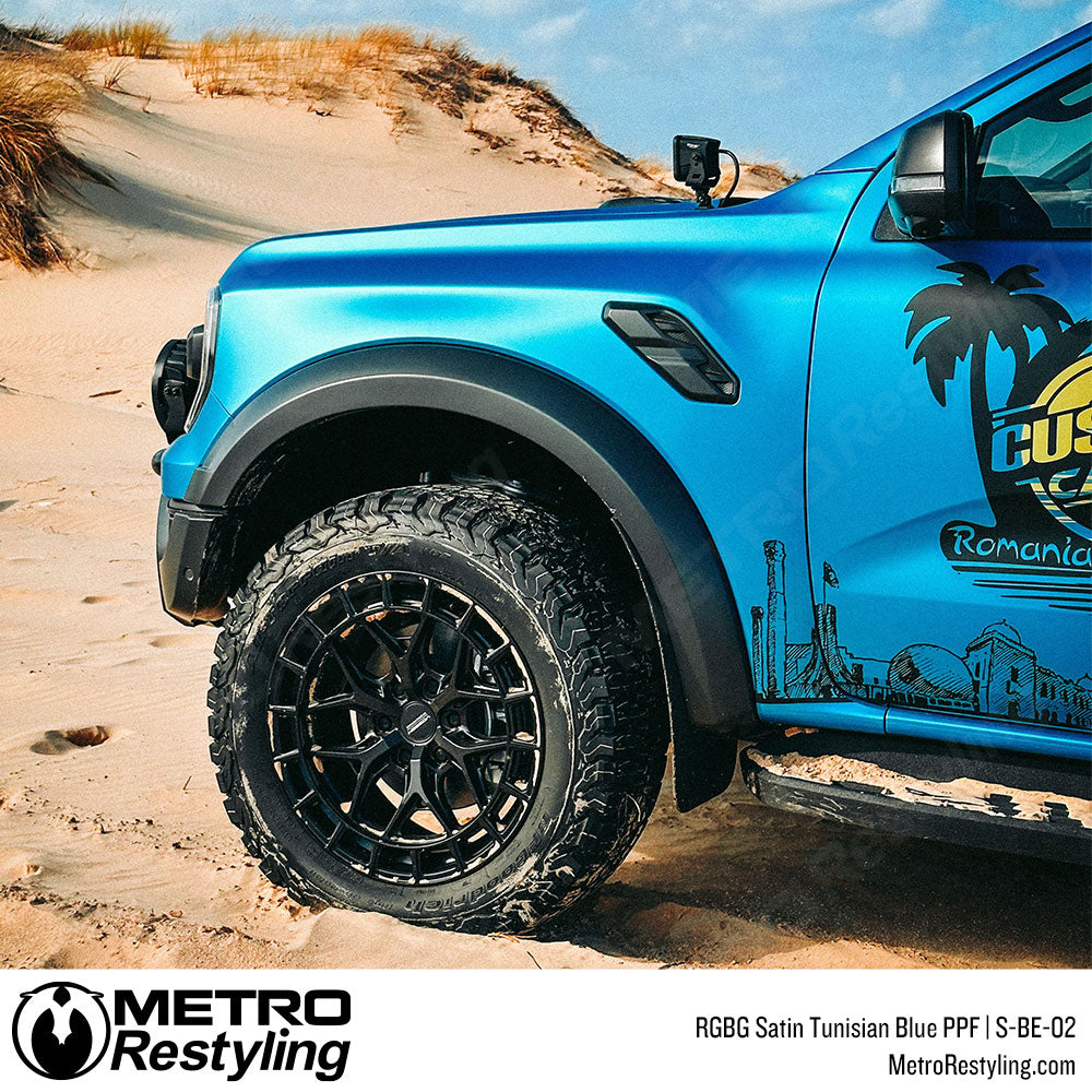 RGBG Satin Tunisian Blue Colored PPF showcases a rich, deep-blue tone inspired by coastal sophistication and modern design. Its satin-matte surface delivers a smooth, vibrant depth that enhances body lines with cool precision. Perfect for those who seek a luxurious yet distinctive style, this finish offers an elegant balance of bold color and refined texture.